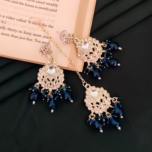 Mandana Kundan Chandbali Earrings - Peacock Blue
