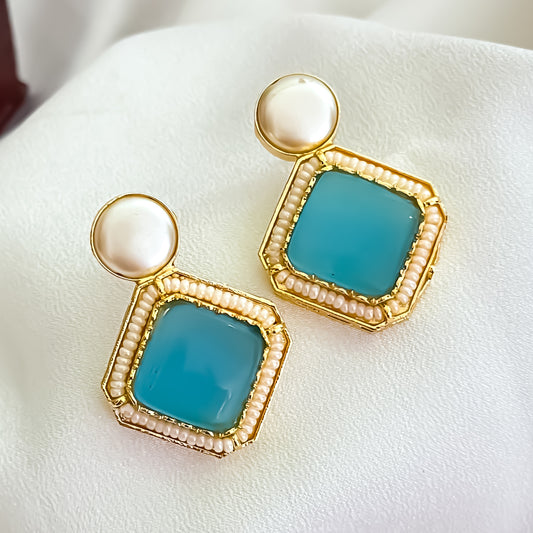 Viren Monalisa Stone Premium Brass Stud Earrings - Sky Blue