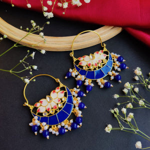 Anokhi Dabi Kundan Meenakari Pearl Chandbali Earrings - Royal Blue