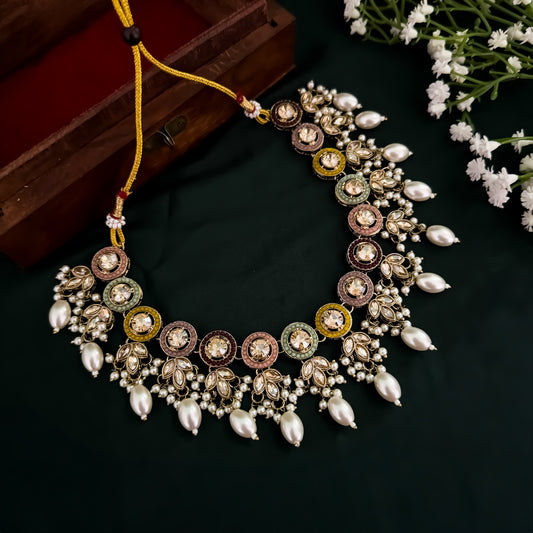 Mrunal Jadau Reverse AD Necklace Set - Multi