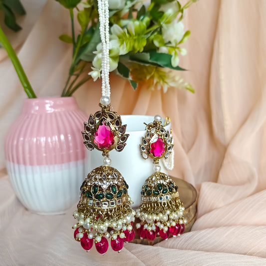 Mohika Mirror Jhumka Earrings with Sahara & Tika Set - Multi