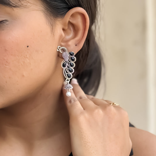 Prena Peacock SLA Dual Tone Brass Jhumka Earrings