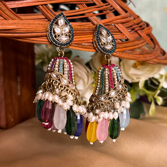 Dhriti Reverse AD Jadau Jhumka with Sahara & Teeka- Multi