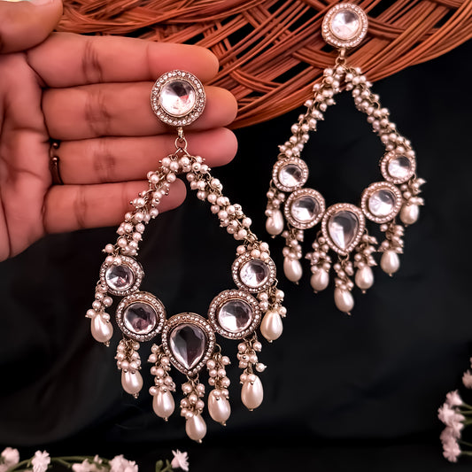 Joans Pearl Chandbali Earrings - Golden/Ivory