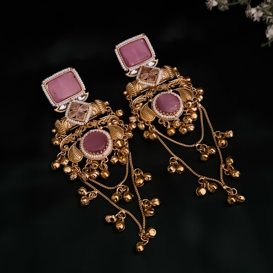 Patralekha Kashmiri Brass Dejhoor Ghungroo Jhumka Earrings - Pastel Pink