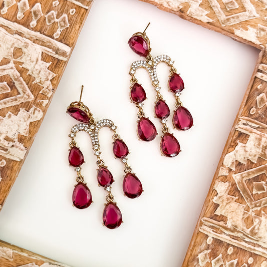 Sharon Chandelier Dangler Chandbali Earrings - Wine