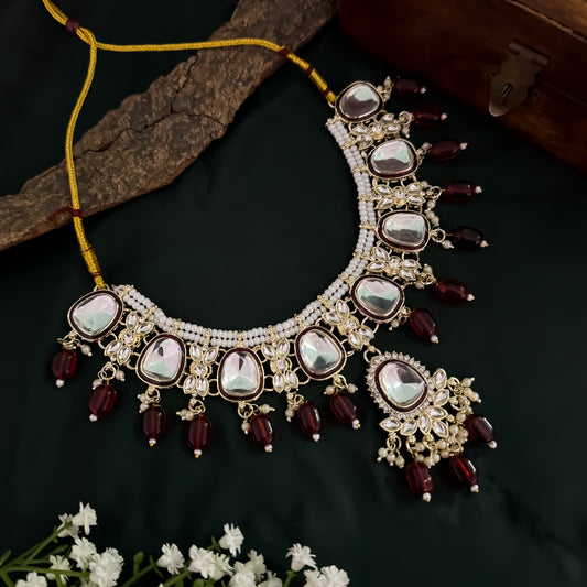 Sahana Jadau Preminum Reverse AD Gantnan Necklace Set with Teeka & Pasha - Wine