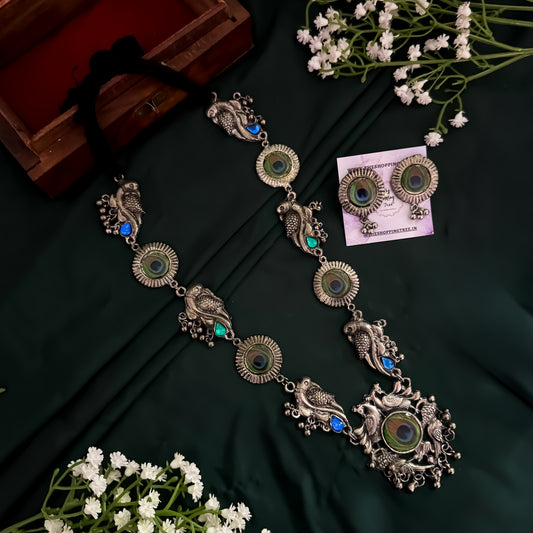 Jodha Jadau Reverse AD Necklace Set with Sahara Earrings & Teeka - Multi