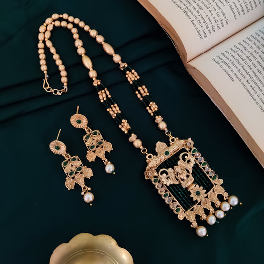 Vilasa Rajwadi Long Necklace Set - Green