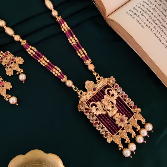 Vilasa Rajwadi Long Necklace Set - Pink