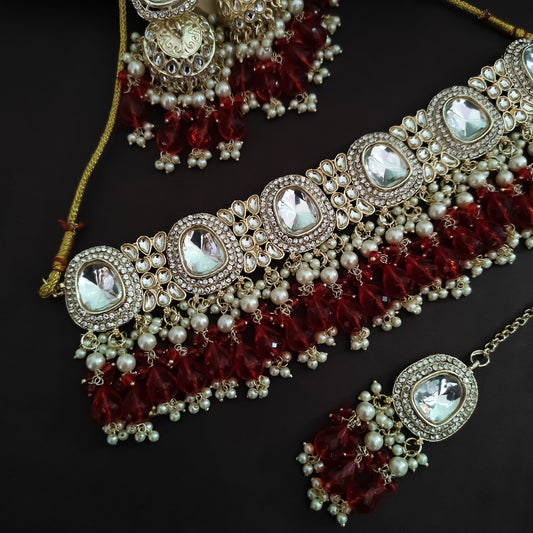 Raisha Kundan Necklace Set - Wine