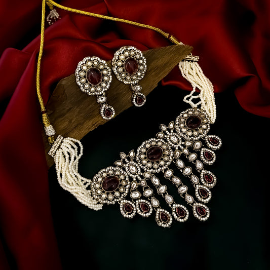 Rumani Premium Victorian Style Choker Necklace Set- Wine