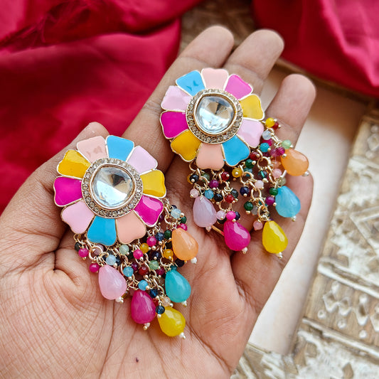 Naaz Dabi Kundan Jhumka Earring - Multi