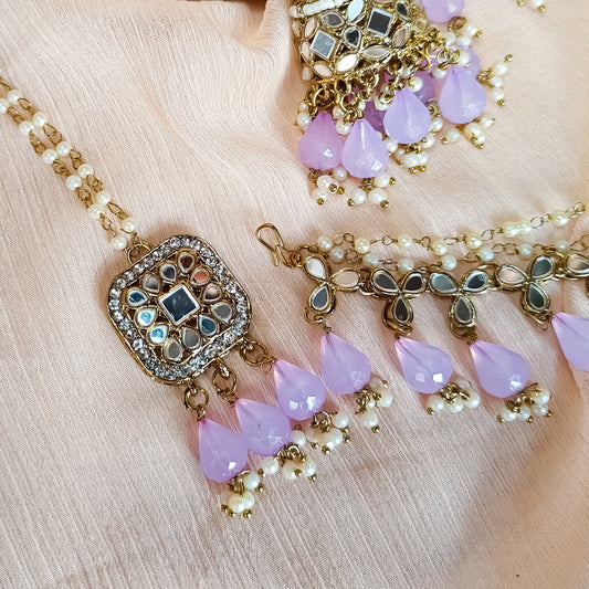 Mohika Mirror Jhumka Earrings with Sahara & Tika Set - Lavender