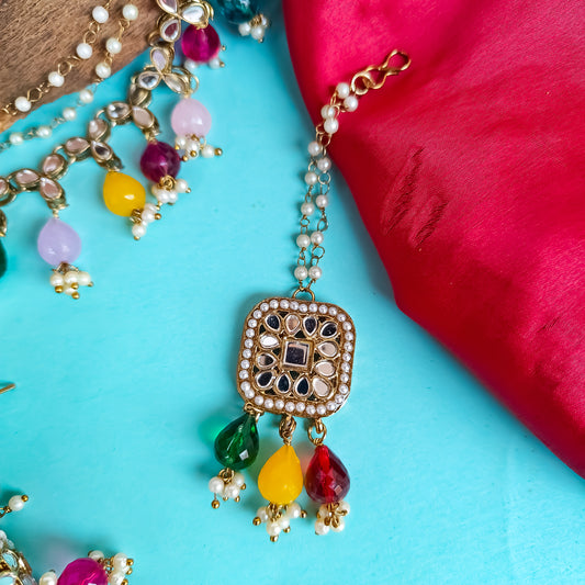 Mohika Mirror Jhumka Earrings with Sahara & Tika Set - Multi