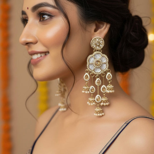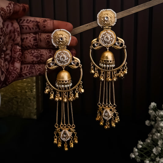 Nikhat Statement Dangler Chandbali Earrings - Golden
