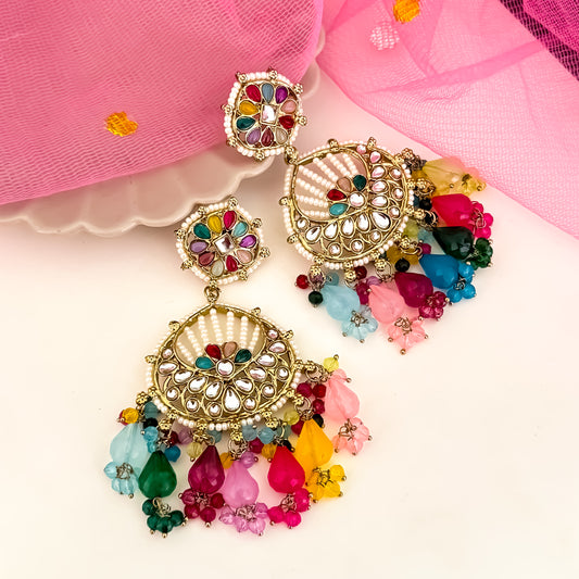 Shaba Jadau Kundan Chandbali Earrings - Multi