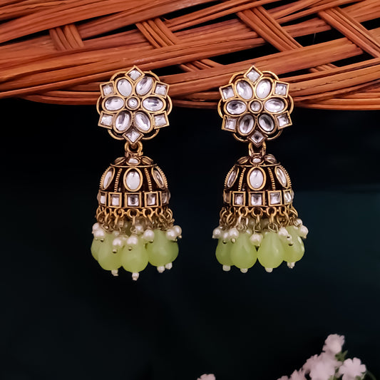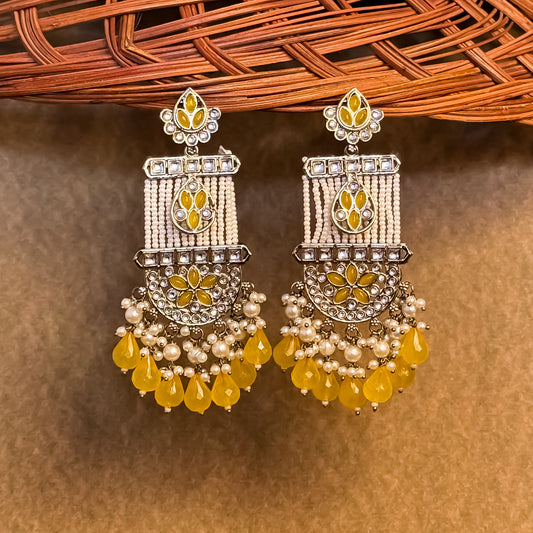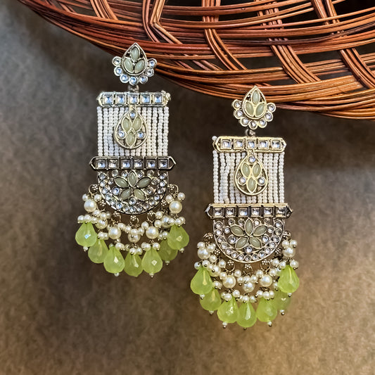 Kamya Pearl Chandbali Earrings- Lemon Green