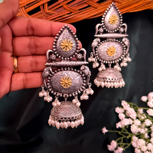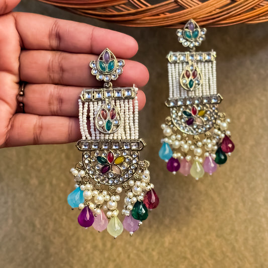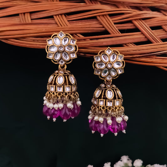 Rani Padmavat Jadau Jhumka Earrings with Sahara & Teeka - Multi
