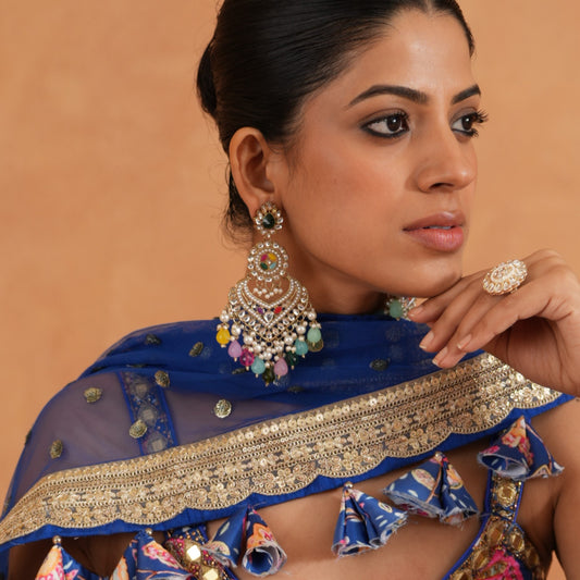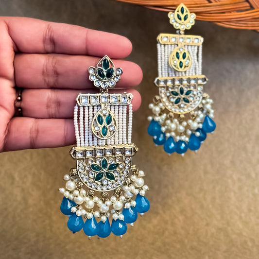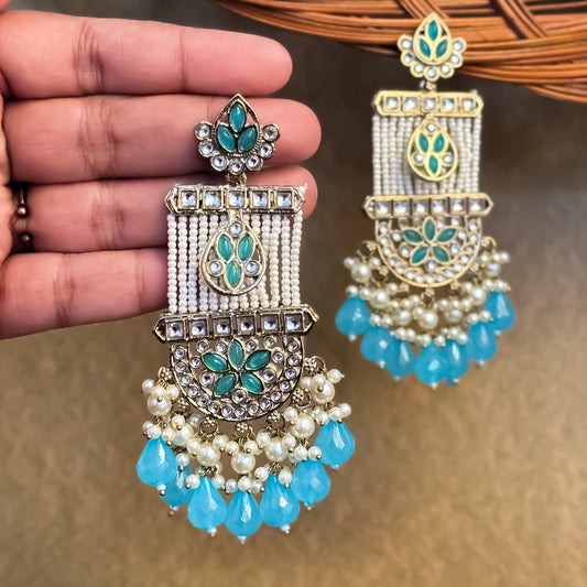 Kamya Pearl Chandbali Earrings- Sky Blue