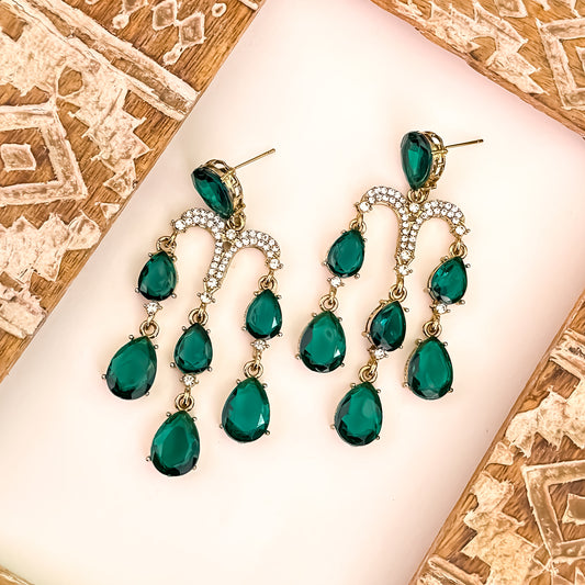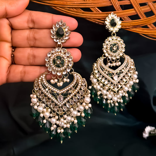 Sharon Chandelier Dangler Chandbali Earrings - Green