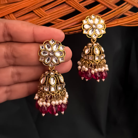Sharon Chandelier Dangler Chandbali Earrings - Maroon