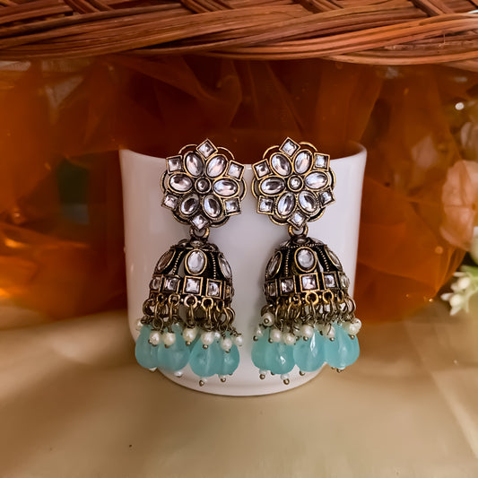 Aashika Pearl Jhumka Earrings- Sky Blue
