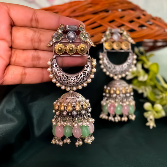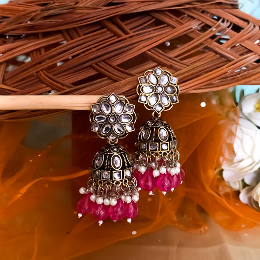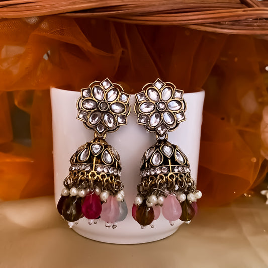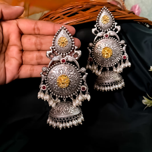 Swara Dual Tone Premium Brass Jhumka Earrings