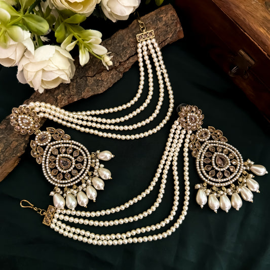 Kanika Jadau (Reverse AD)Chandbali Sahara Earrings & Mangtika Set - Ivory/Golden