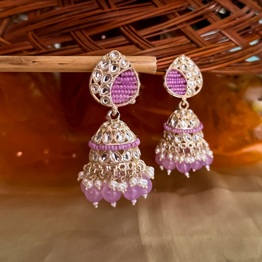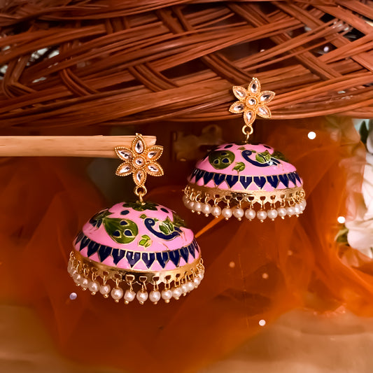 Vishakha Brass Jhumka Earrings - Pastel Pink