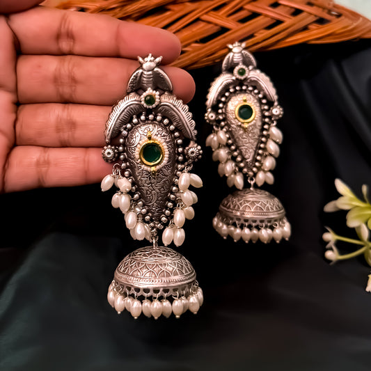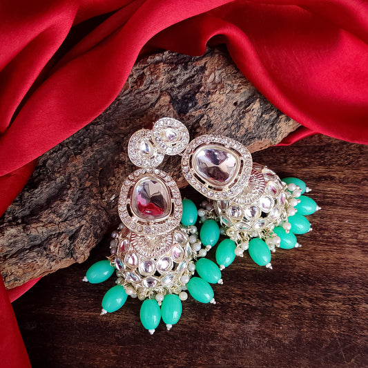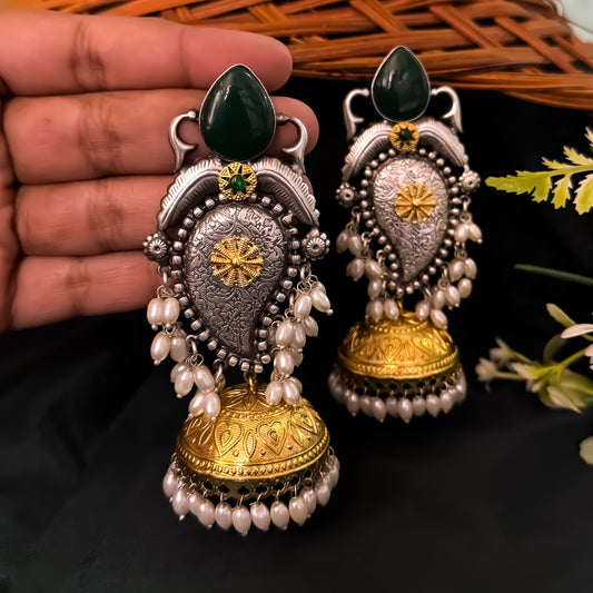 Ruhani Premium Brass Dual Tone Jhumka Earrings - Green