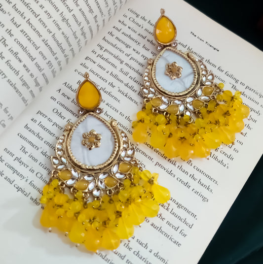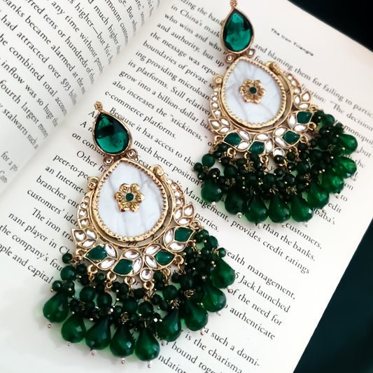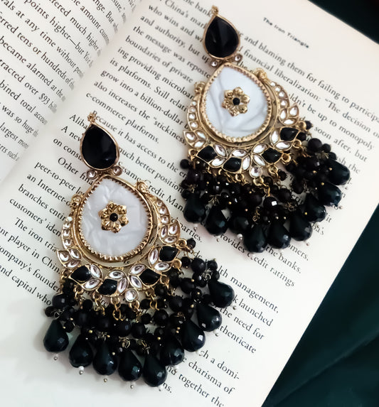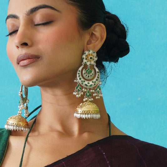 Zahira Jadau Chandbali Earrings- Golden/Ivory