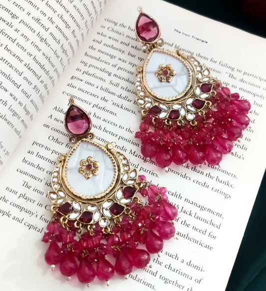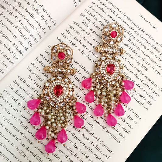 Mihika Kundan Chandbali Earrings - Hot Pink