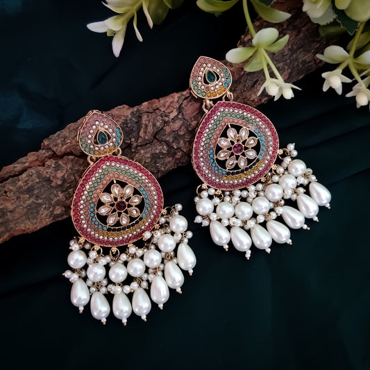 Aashika Pearl Jhumka Earrings- Hot Pink