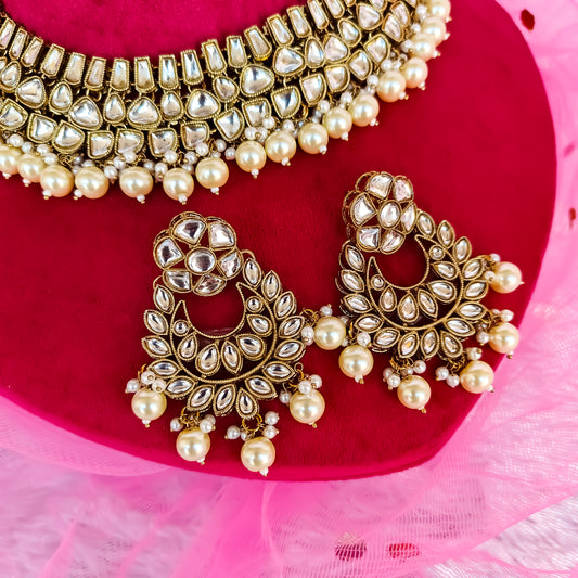 Arshi Kundan Pearl Necklace Set - Golden