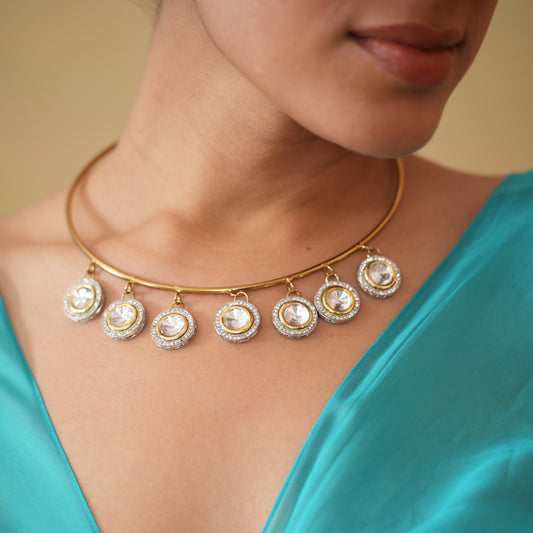 Mitali Kundan Sleek Golden Necklace Set with Earrings & Teeka