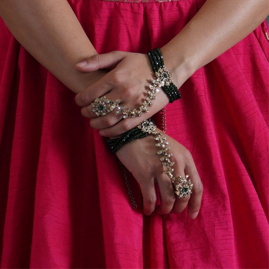 Neerja Premium Reverse AD Haathphool - Golden & Green