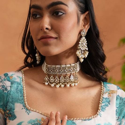 Sariska Pearl Loaded MOP Necklace Set - Golden