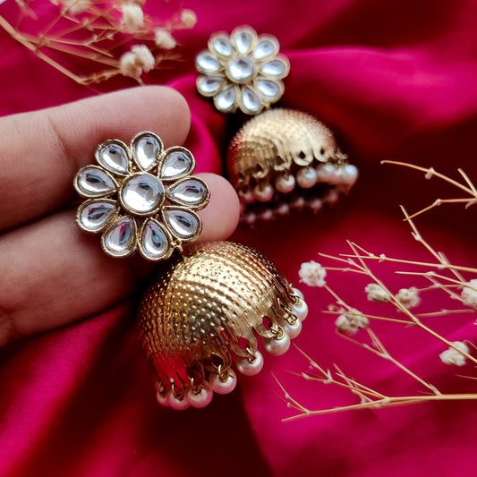 Kumud Mehndi Golden Kundan Jhumka Earrings