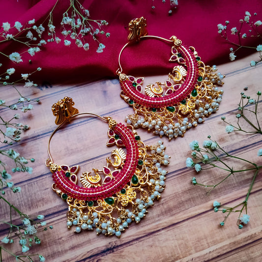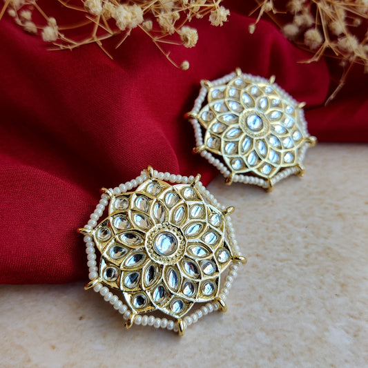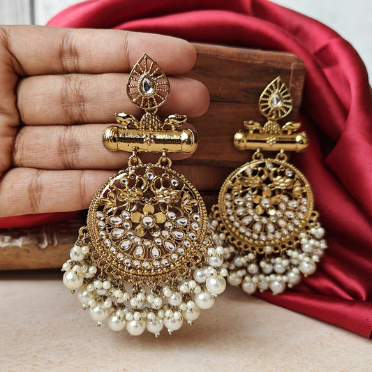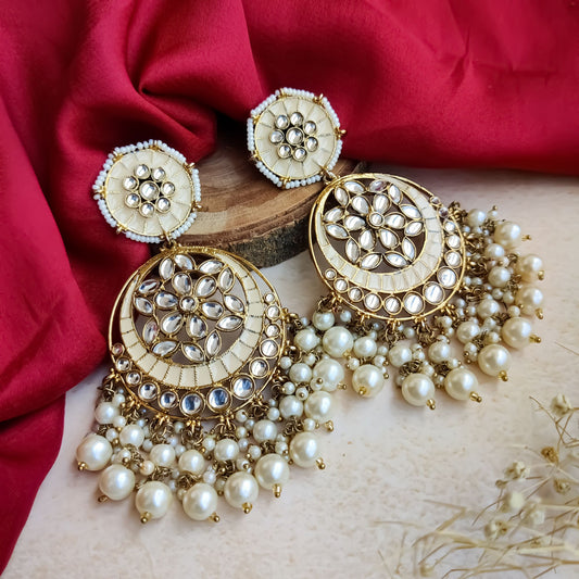 Zahira Jadau Chandbali Earrings- Golden/Ivory