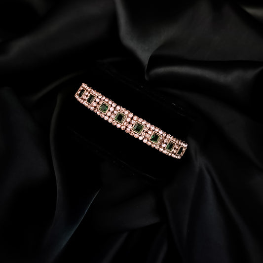 Manvika Kundan Openable Bangle/Kada - Green