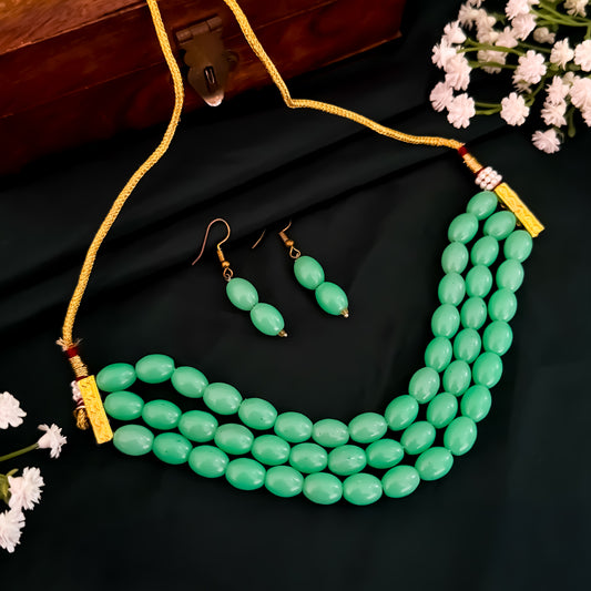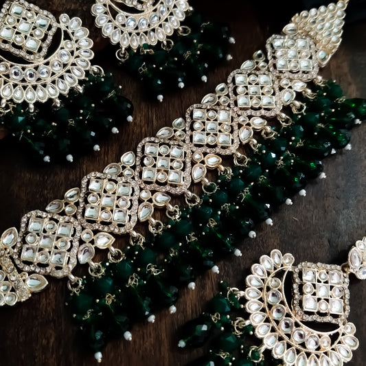 Katha Antique Zircon Brass Necklace Set- Pastel Green