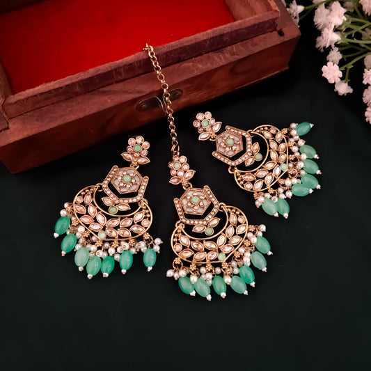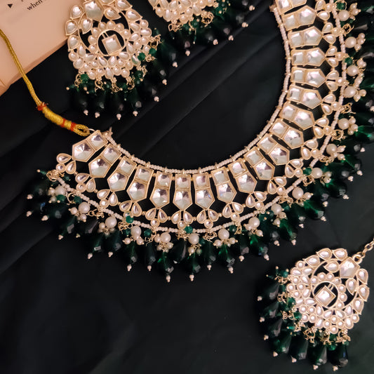 Arshi Kundan Pearl Necklace Set - Mint Green
