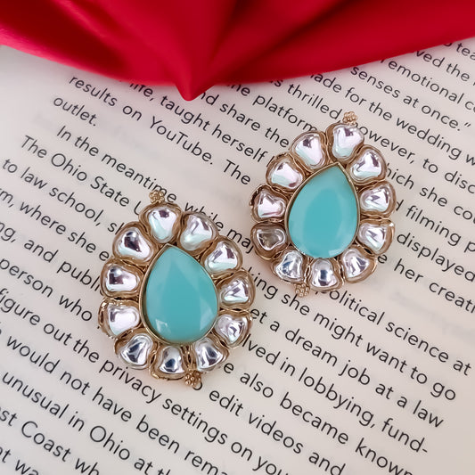 Peacock Zircon Hand-Painted SLA Jhumka Earrings - Green & White