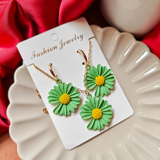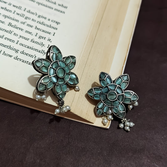 Uncut Natural Druzzy stone Brass Earrings - Green
