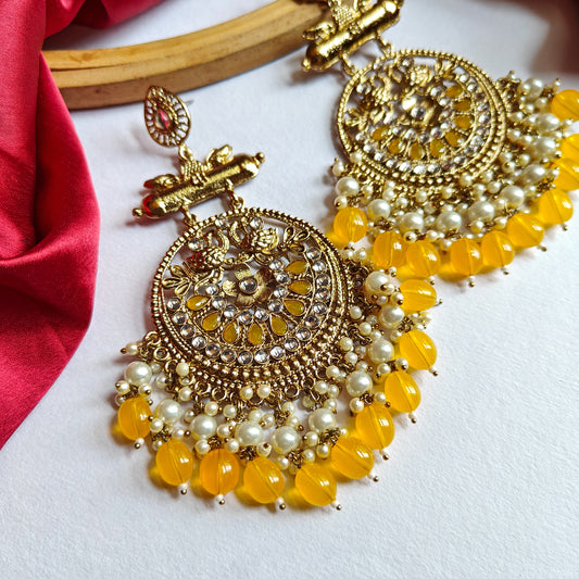 Mohika Mirror Jhumka Earrings with Sahara & Tika Set - Yellow