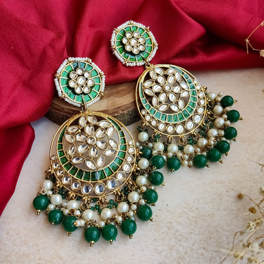 Zahira Jadau Chandbali Earrings- Golden/Ivory