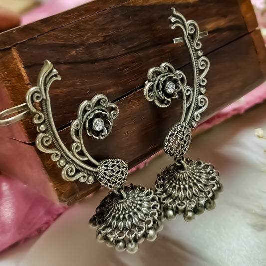 Ghunghroo Jhumka Silver Oxidised Earrings with Earchains