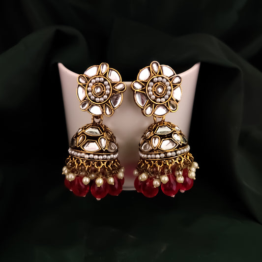 Ruhani Pearl Jhumka Earrings- Hot Pink