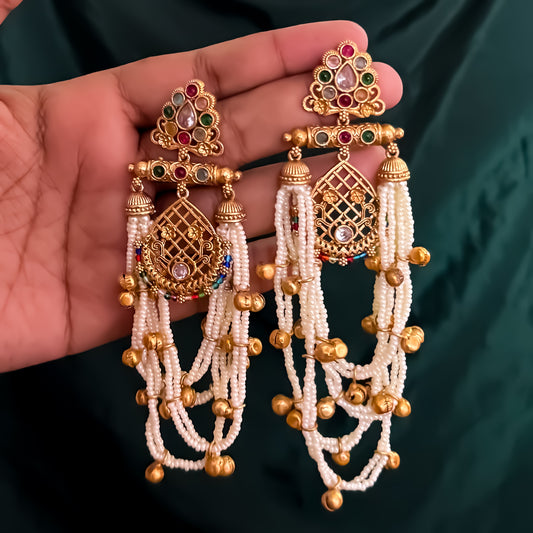 Shambhavi Premium Kashmiri Brass Pearl Chandbali Earrings - Multi